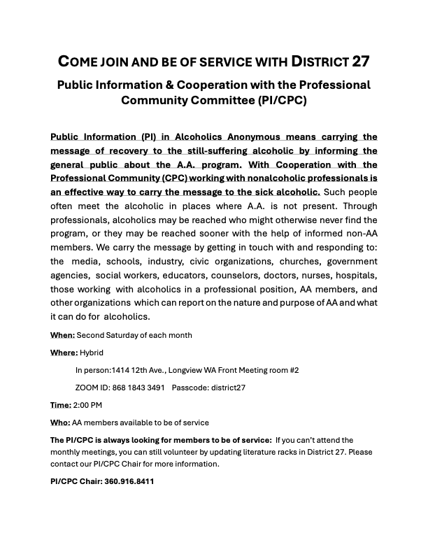 DISTRICT 27 / AREA 72 of Alcoholics Anonymous